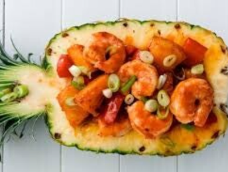 - Serve hot with jasmine or coconut rice on the side, or enjoy the pineapple stuffed with prawns on its own for a lighter meal.